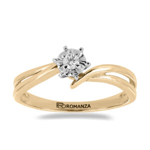 Anillo Solitario Ilusión con Montadura 0.12 Quilates de Diamante en Oro Amarillo de 14 kt