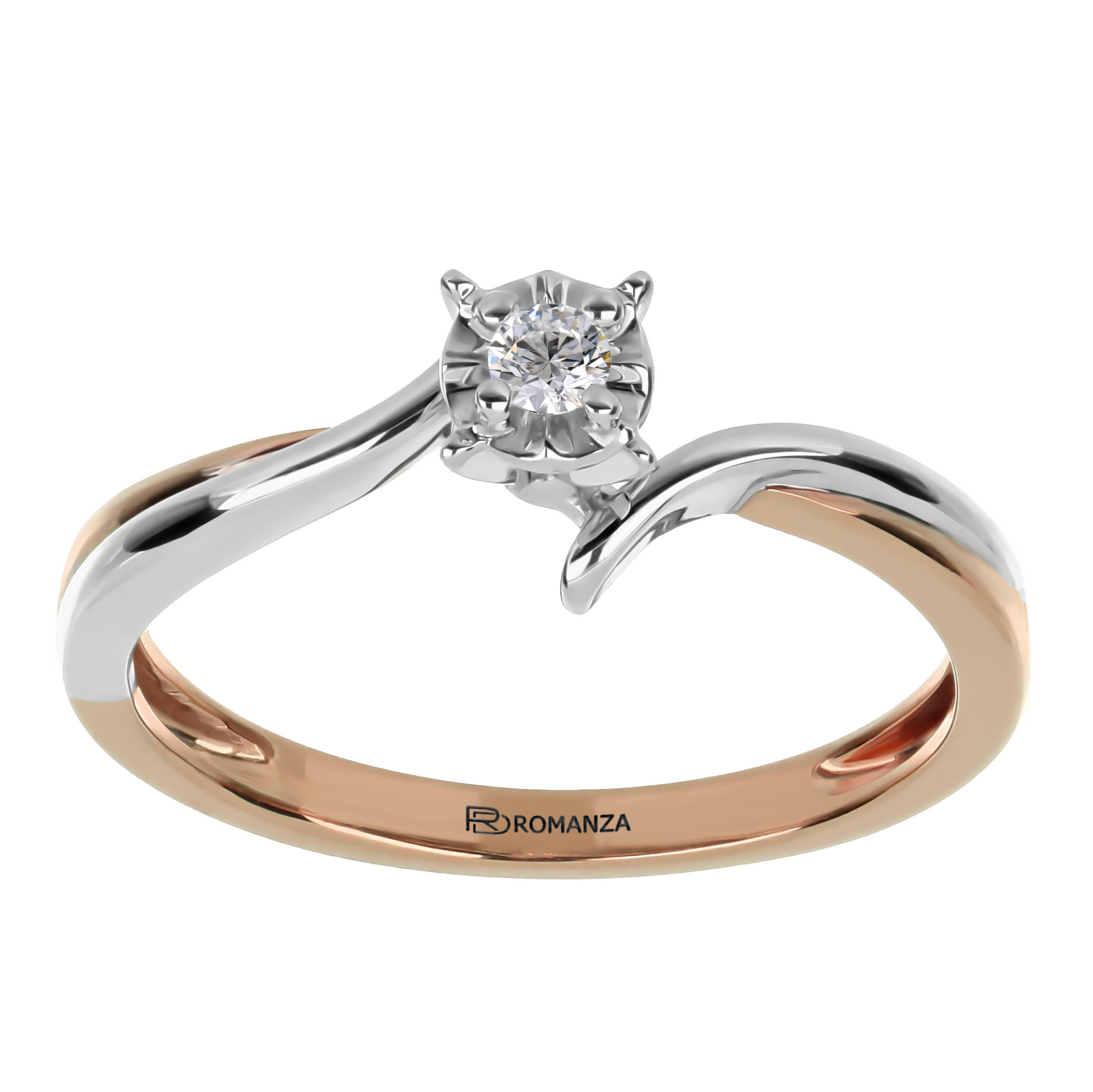 Anillo Solitario Ilusión con Centro 0.06 Quilates de Diamante en Oro Combinado de 14 kt