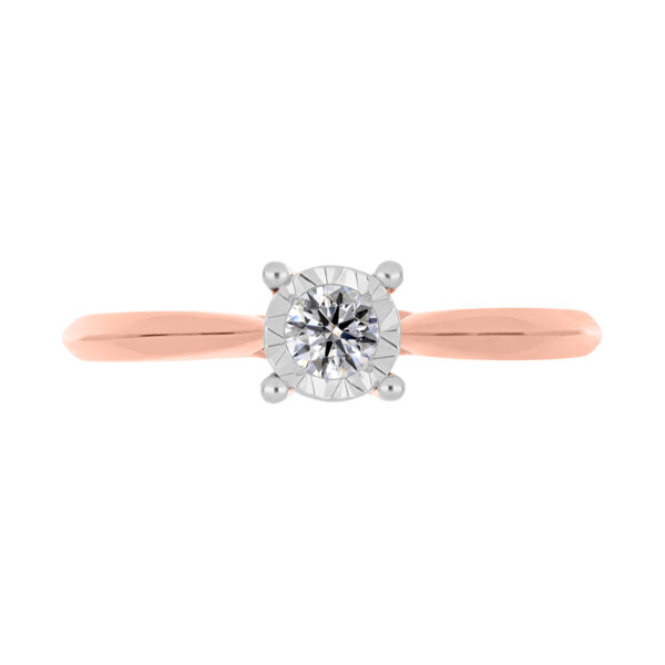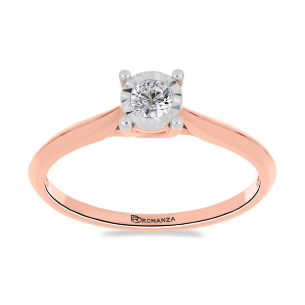 Anillo Solitario Ilusión con Centro 0.15 Quilates de Diamante en ORO ROSA de 14 kt