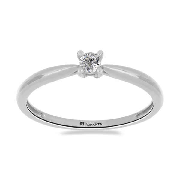 Anillo Solitario con Centro 0.10 Quilates de Diamante en Oro Blanco de 14 kt