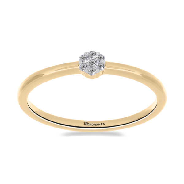 Anillo Solitario Roseta con Montadura 0.07 Quilates de Diamante en ORO AMARILLO de 14 kt