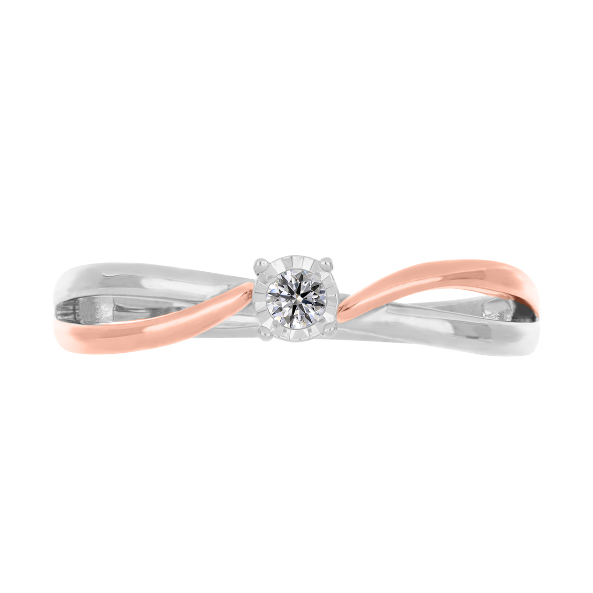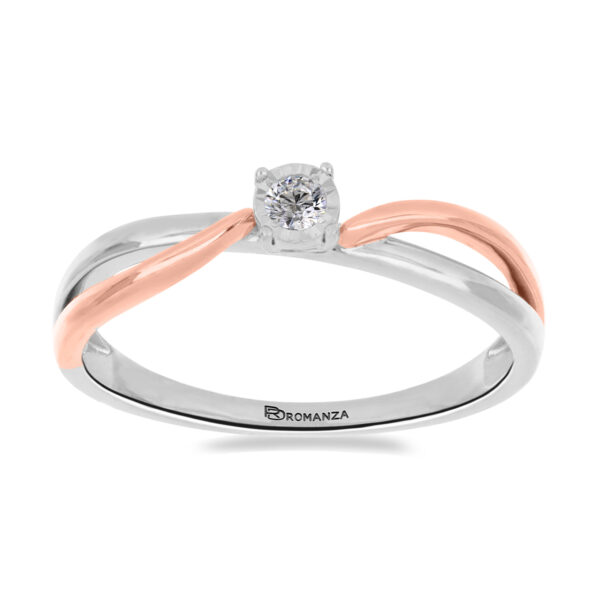 Anillo Solitario Ilusión con Centro 0.05 Quilates de Diamante en ORO COMBINADO de 14 kt