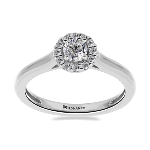 Anillo Solitario con Centro 0.17 Quilates y Montadura 0.05 Quilates de Diamante en Oro Blanco de 14 kt