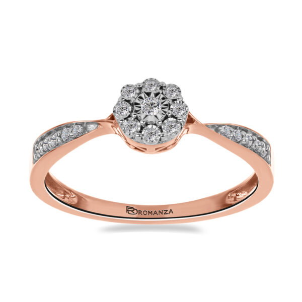 Anillo Solitario Roseta con Montadura 0.12 Quilates de Diamante en ORO ROSA de 14 kt
