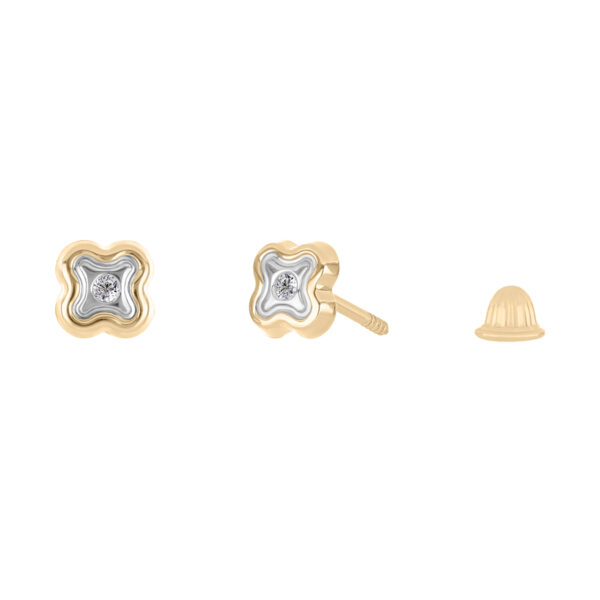 Aretes Bebé o Niña con Montadura 0.02 Quilates de Diamante en ORO COMBINADO de 14 kt