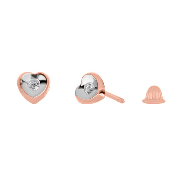 Aretes Bebé o Niña con Montadura 0.03 Quilates de Diamante en ORO COMBINADO de 14 kt