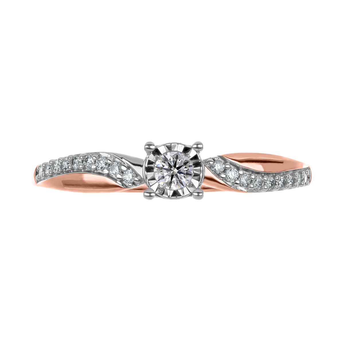 Anillo Solitario Ilusión con Montadura 0.17 Quilates de Diamante en ORO ROSA de 14 kt