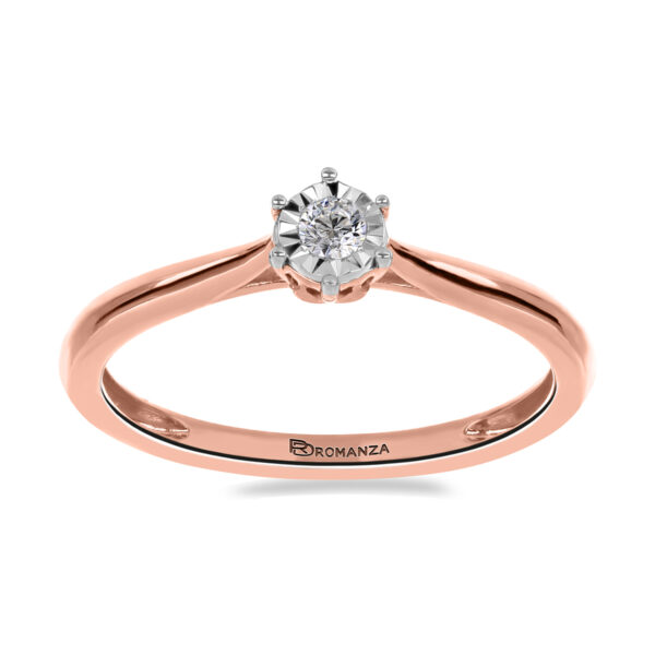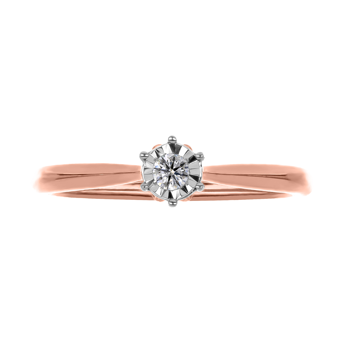 Anillo Solitario Ilusión con Centro 0.07 Quilates de Diamante en ORO ROSA de 14 kt