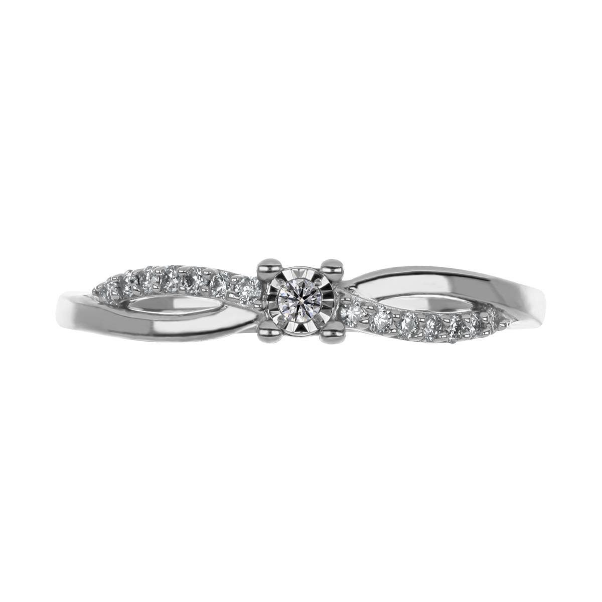 Anillo Solitario Ilusión con Montadura 0.12 Quilates de Diamante en ORO BLANCO de 14 kt