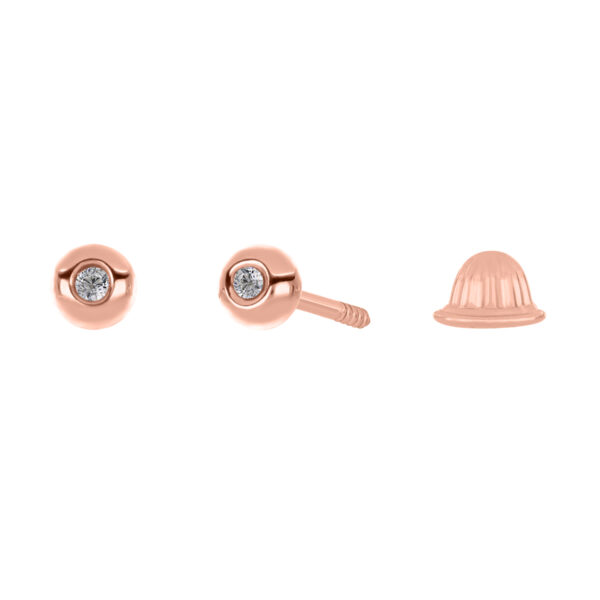 Aretes Bebé o Niña con Montadura 0.02 Quilates de Diamante en ORO ROSA de 14 kt
