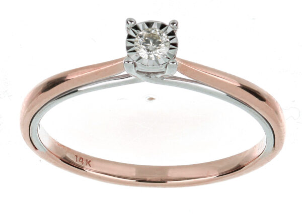 Anillo Solitario Ilusión con Centro 0.07 Quilates de Diamante en ORO COMBINADO de 14 kt