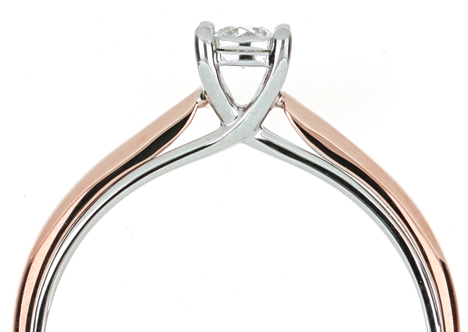 Anillo Solitario Ilusión con Centro 0.10 Quilates de Diamante en ORO COMBINADO de 14 kt
