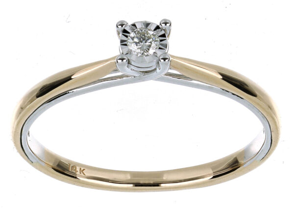 Anillo Solitario Ilusión con Centro 0.04 Quilates de Diamante en ORO COMBINADO de 14 kt