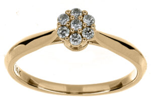 Anillo Solitario Roseta con Montadura 0.15 Quilates de Diamante en ORO AMARILLO de 14 kt