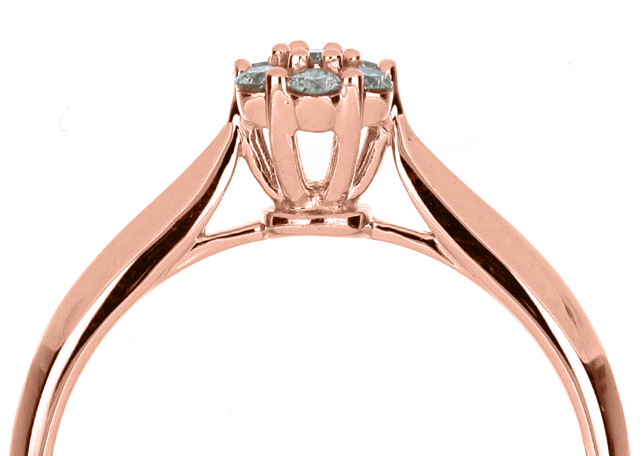 Anillo Solitario Roseta con Montadura 0.19 Quilates de Diamante en ORO ROSA de 14 kt