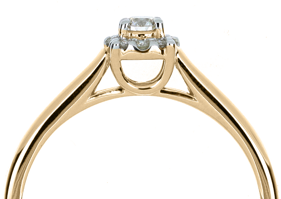 Anillo Solitario Roseta con Montadura 0.17 Quilates de Diamante en ORO AMARILLO de 14 kt