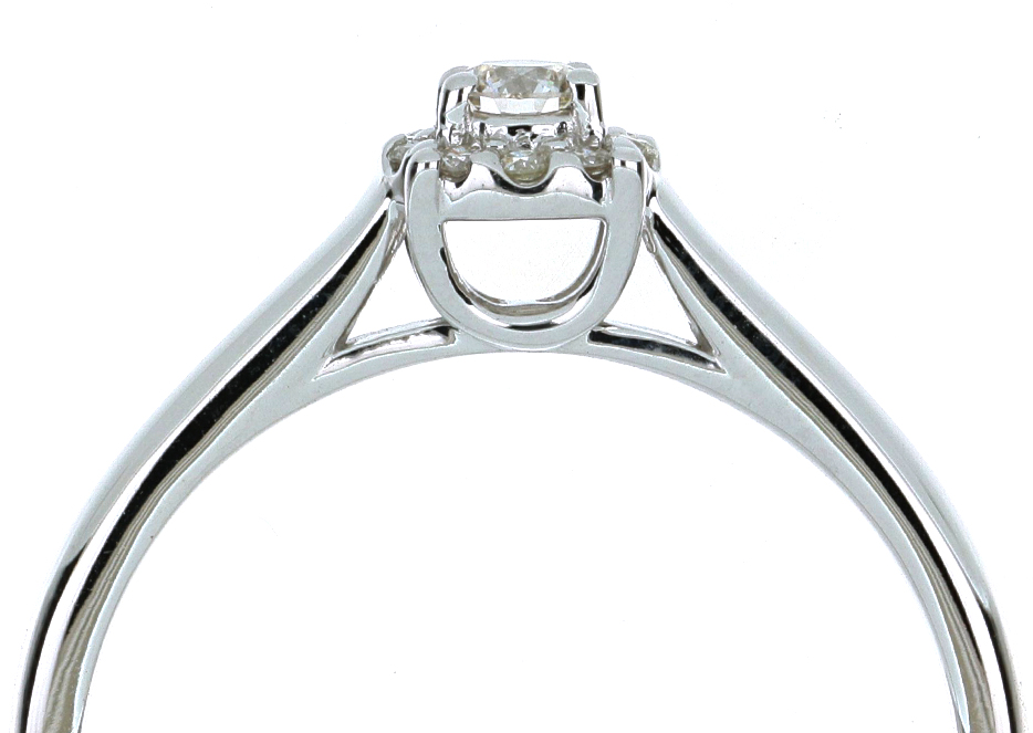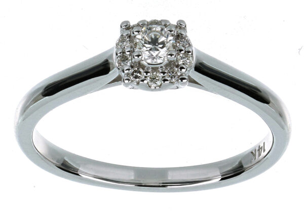 Anillo Solitario Roseta con Montadura 0.19 Quilates de Diamante en ORO BLANCO de 14 kt