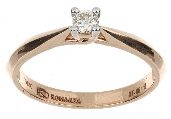 Anillo Solitario con Centro 0.15 Quilates de Diamante en ORO ROSA de 14 kt