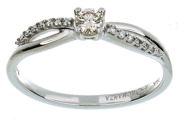 Anillo Solitario con Centro 0.20 Quilates y Montadura 0.12 Quilates de Diamante en ORO BLANCO de 14 kt