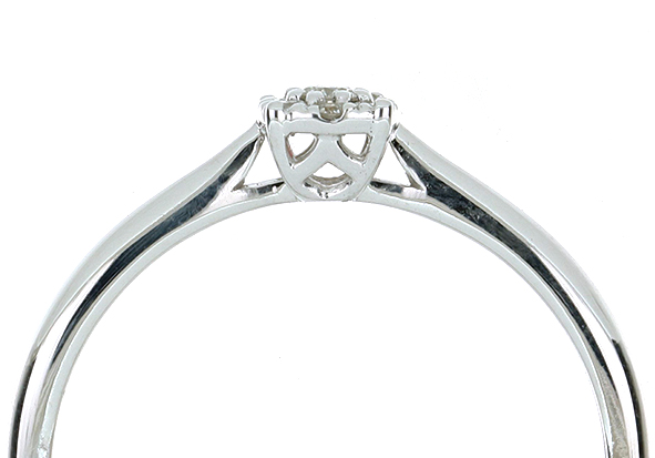 Anillo Solitario Roseta con Montadura 0.12 Quilates de Diamante en ORO BLANCO de 14 kt