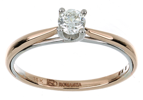 Anillo Solitario con Centro 0.15 Quilates de Diamante en ORO ROSA de 14 kt