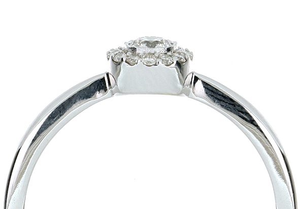 Anillo Solitario Roseta con Montadura 0.19 Quilates de Diamante en ORO BLANCO de 14 kt