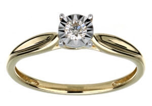 Anillo Solitario Ilusión con Centro 0.10 Quilates de Diamante en ORO AMARILLO de 14 kt