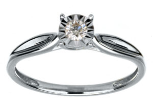 Anillo Solitario Ilusión con Centro 0.10 Quilates de Diamante en ORO BLANCO de 14 kt