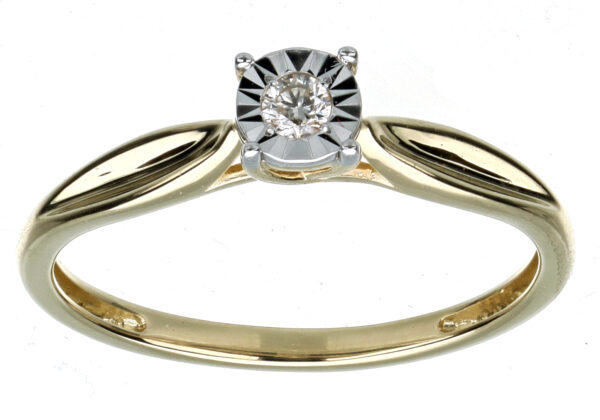 Anillo Solitario Ilusión con Centro 0.10 Quilates de Diamante en ORO AMARILLO de 14 kt