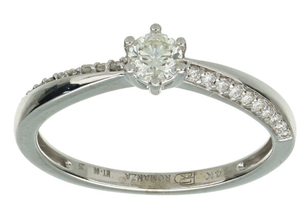 Anillo Solitario con Centro 0.17 Quilates y Montadura 0.05 Quilates de Diamante en Oro Blanco de 14 kt