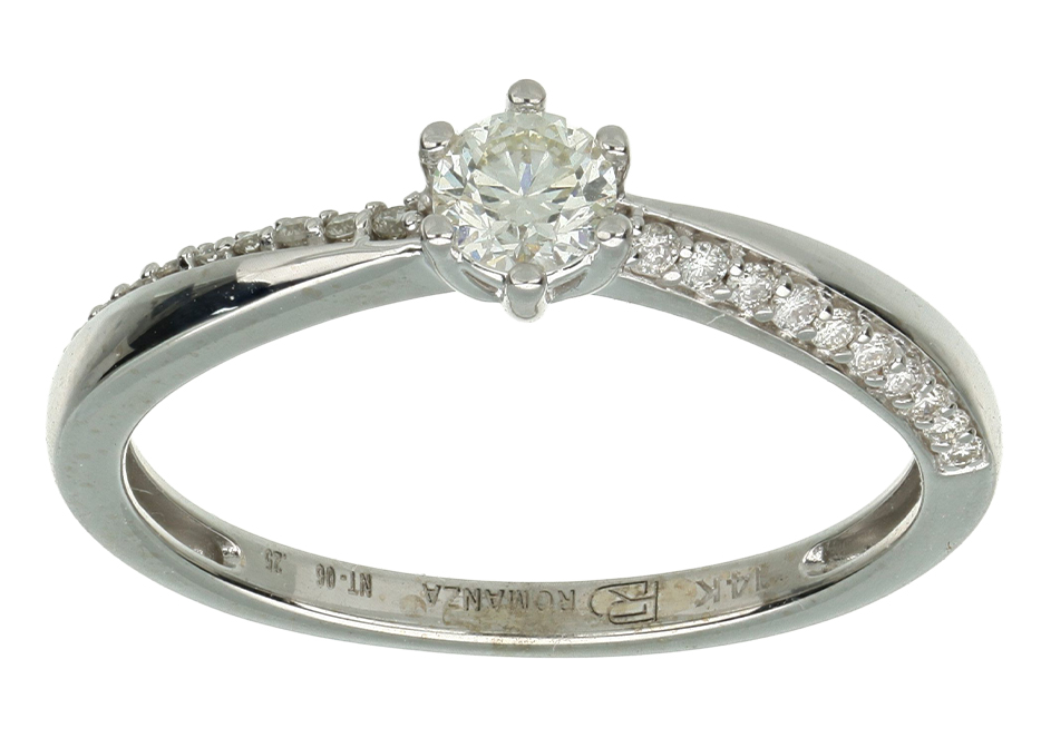 Anillo Solitario con Centro 0.20 Quilates y Montadura 0.12 Quilates de Diamante en ORO BLANCO de 14 kt