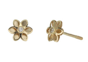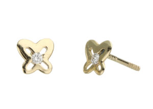 Aretes Bebé o Niña con Montadura 0.03 Quilates de Diamante en ORO AMARILLO de 14 kt