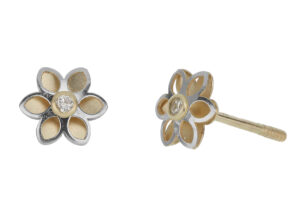 Aretes Bebé o Niña con Montadura 0.02 Quilates de Diamante en ORO COMBINADO de 14 kt