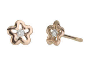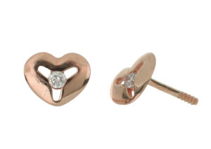 Aretes Bebé o Niña con Montadura 0.03 Quilates de Diamante en ORO ROSA de 14 kt