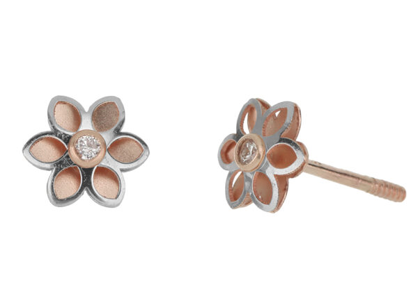 Aretes Bebé o Niña con Montadura 0.02 Quilates de Diamante en ORO COMBINADO de 14 kt