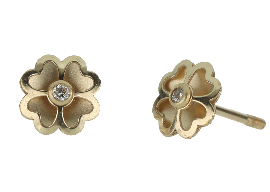 Aretes Bebé o Niña con Montadura 0.03 Quilates de Diamante en ORO AMARILLO de 14 kt
