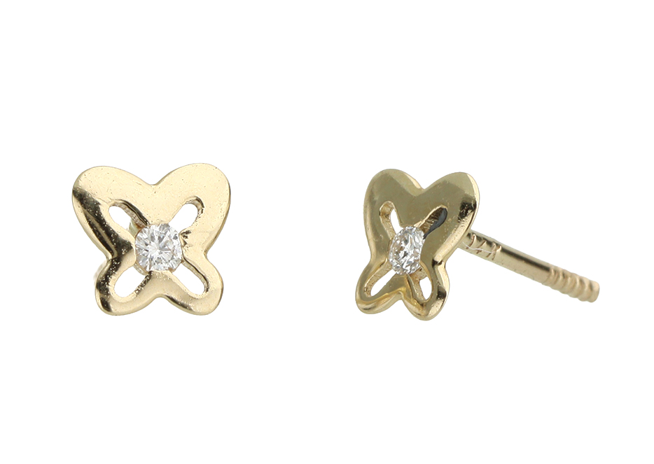 Aretes Bebé o Niña con Montadura 0.02 Quilates de Diamante en ORO AMARILLO de 14 kt