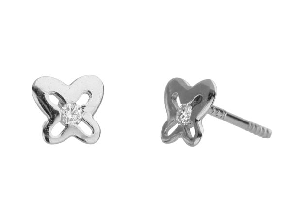 Aretes Bebé o Niña con Montadura 0.03 Quilates de Diamante en ORO BLANCO de 14 kt