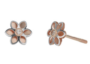 Aretes Bebé o Niña con Montadura 0.03 Quilates de Diamante en ORO ROSA de 14 kt