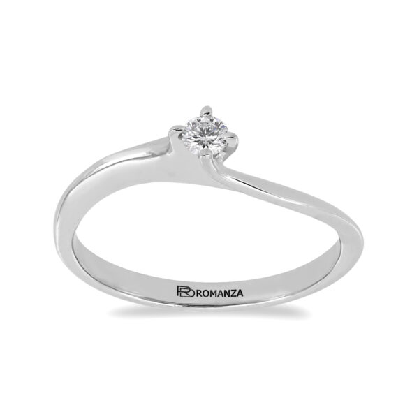 Anillo Solitario con Centro 0.10 Quilates de Diamante en Oro Blanco de 14 kt