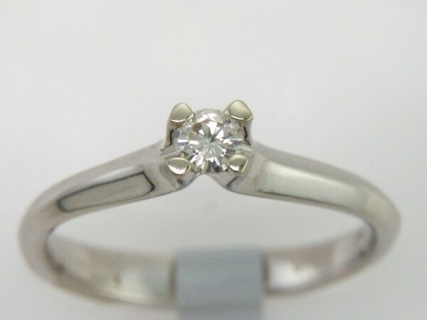 Anillo Solitario con Centro 0.15 Quilates de Diamante en Oro Blanco de 14 kt