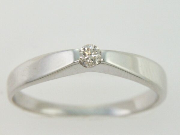 Anillo Solitario con Centro 0.08 Quilates de Diamante en Oro Blanco de 14 kt