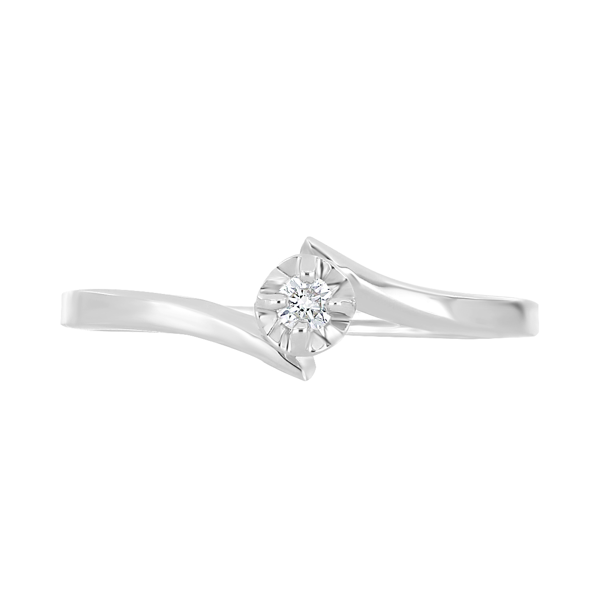 Anillo Solitario Ilusión con Centro 0.06 Quilates de Diamante en Oro Blanco de 14 kt