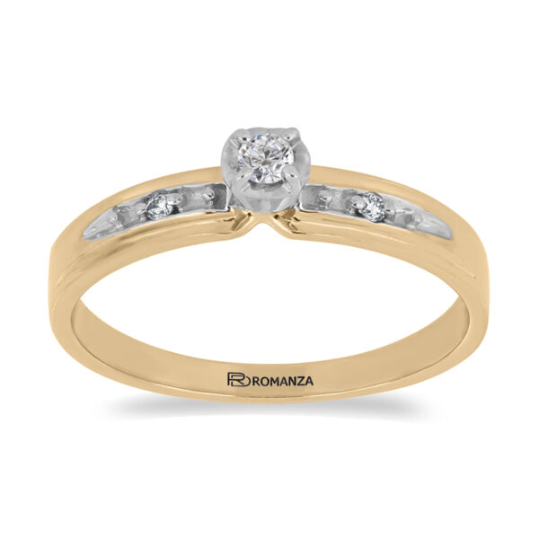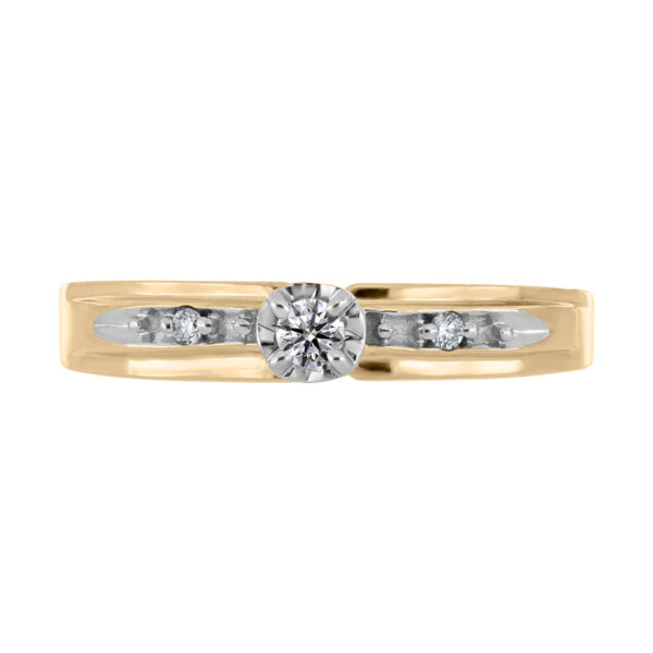 Anillo Solitario Ilusión con Centro 0.05 Quilates y Montadura 0.02 Quilates de Diamante en Oro Amarillo de 14 kt