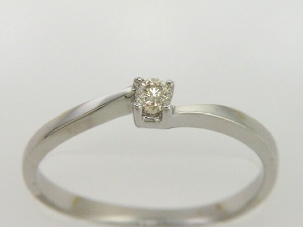 Anillo Solitario con Centro 0.07 Quilates de Diamante en Oro Blanco de 14 kt