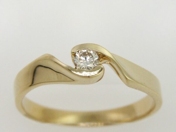 Anillo Solitario con Centro 0.12 Quilates de Diamante en Oro Amarillo de 14 kt