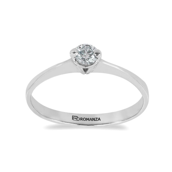 Anillo Solitario con Centro 0.15 Quilates de Diamante en ORO BLANCO de 14 kt