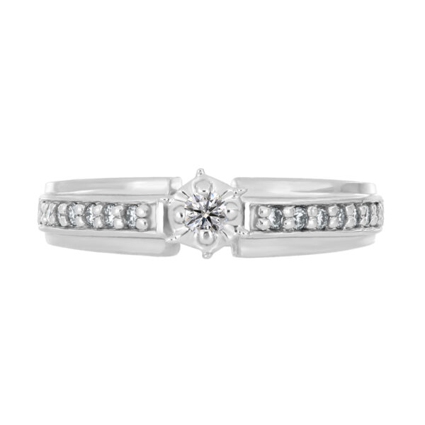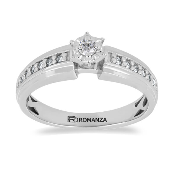 Anillo Solitario Ilusión con Centro 0.07 Quilates y Montadura 0.14 Quilates de Diamante en Oro Blanco de 14 kt