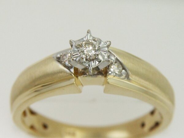 Anillo Solitario Ilusión con Centro 0.12 Quilates de Diamante en Oro Amarillo de 14 kt