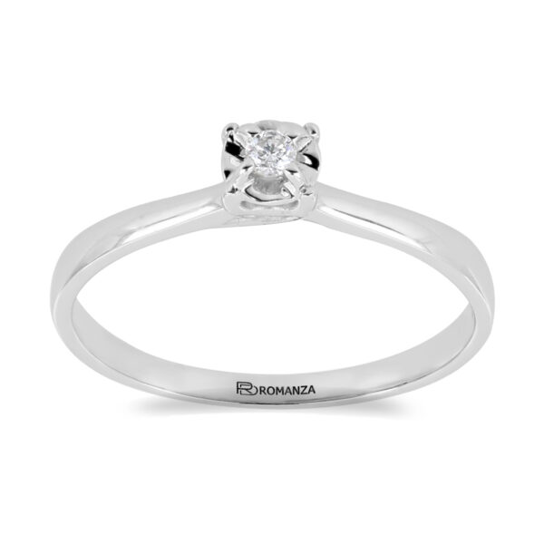 Anillo Solitario Ilusión con Centro 0.04 Quilates de Diamante en Oro Blanco de 14 kt